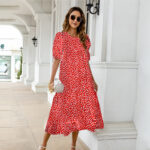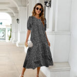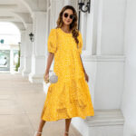 - 夏季清新風格: 搭配清爽的黃色圓點印花和泡泡袖,這件連衣裙散發出夏日的甜蜜氛圍。