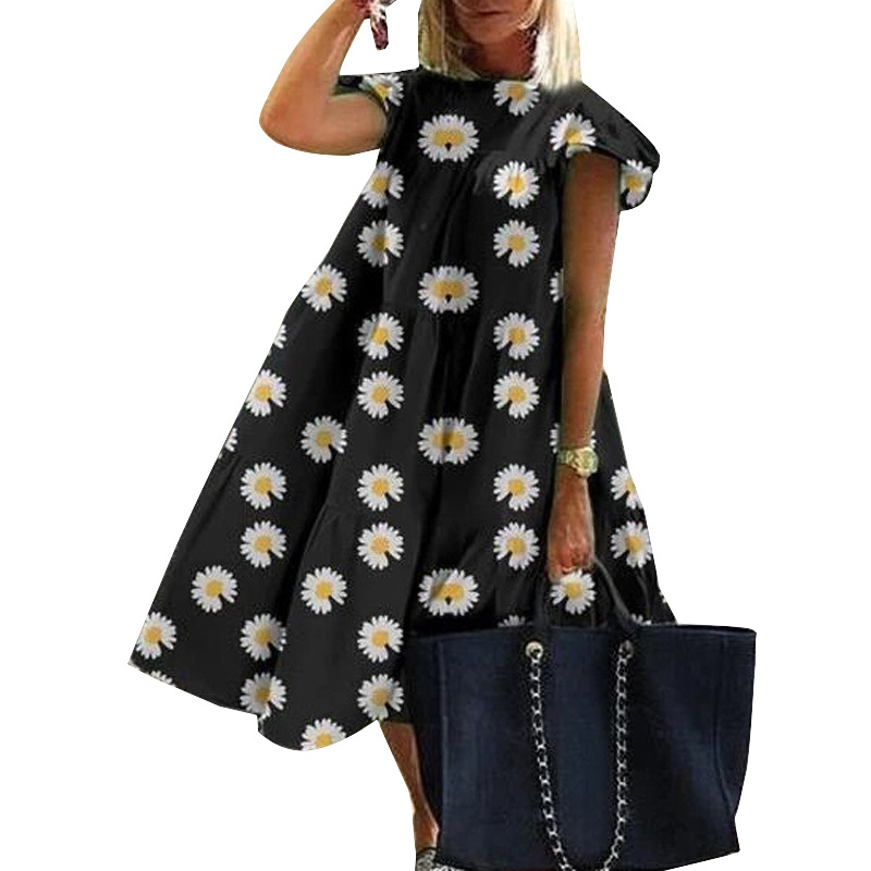 - 休閒夏季風格: 圓領、短袖、中腰設計,讓這款連衣裙散發出休閒時尚的氣息,是夏季出遊的理想選擇。
